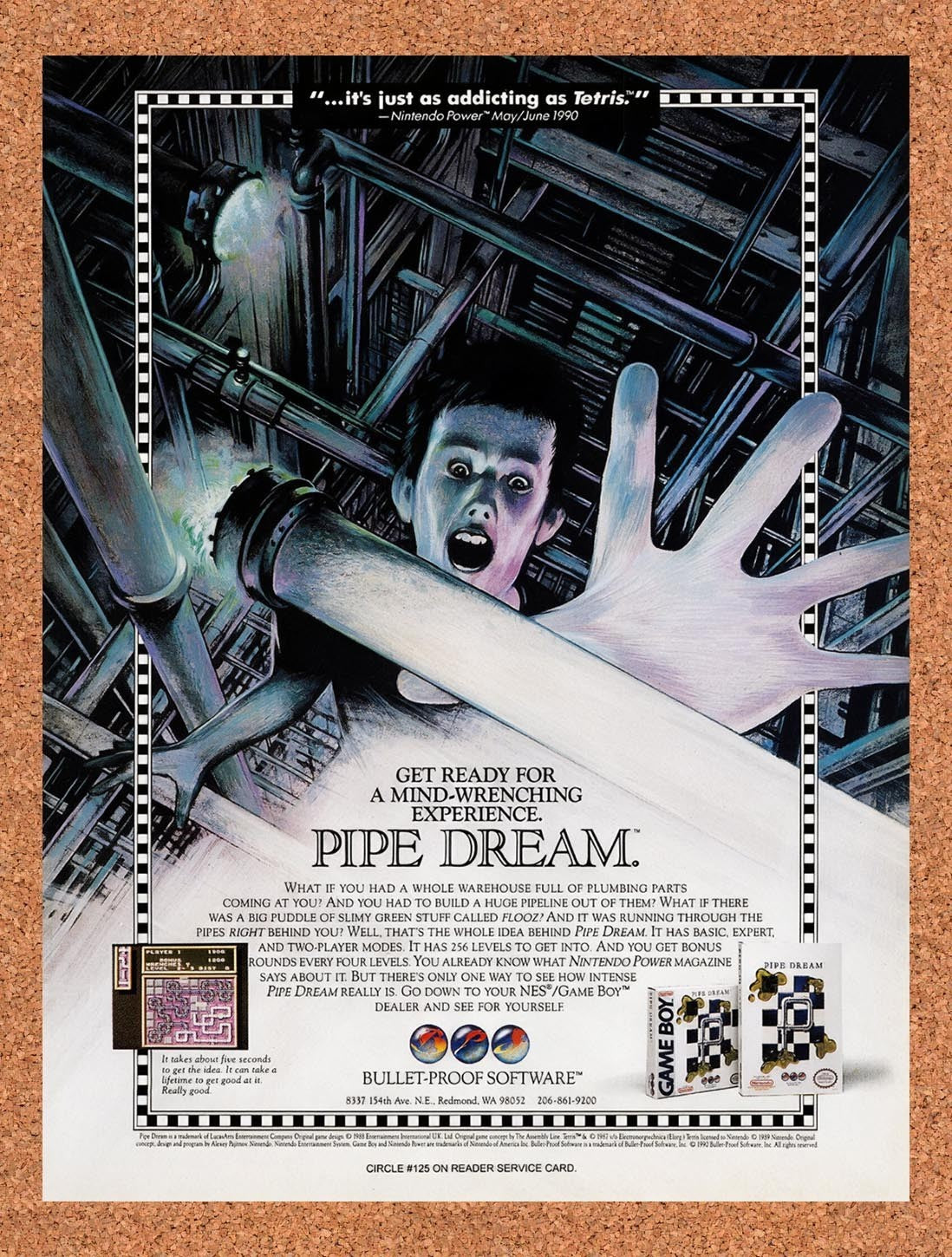 1990 Pipe Dream NES Original Ad v2 is backordered and will ship as soon as it is back in stock.