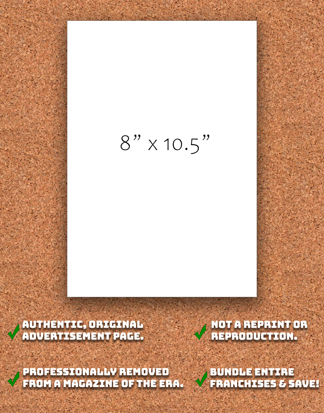 This ad is 100% authentic - professionally removed from a publication of its respective era. Special care is taken with each and every piece to ensure the entirety of the image is fully preserved while sourcing. These original advertisements can be framed and showcased on the wall of a game room, or collected as a tangible piece of video game history.