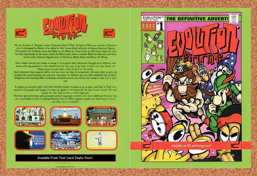1994 Evolution Lost In Time Amiga Original Ad v1