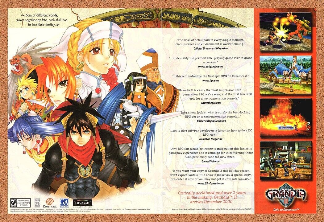 This 2000 Grandia II Dreamcast Original Ad/Wall Art is 100% authentic - professionally removed from a publication of its respective era. Special care is taken with each and every piece to ensure the entirety of the image is fully preserved while sourcing. These original advertisements can be framed and showcased on the wall of a game room, or collected as a tangible piece of video game history.