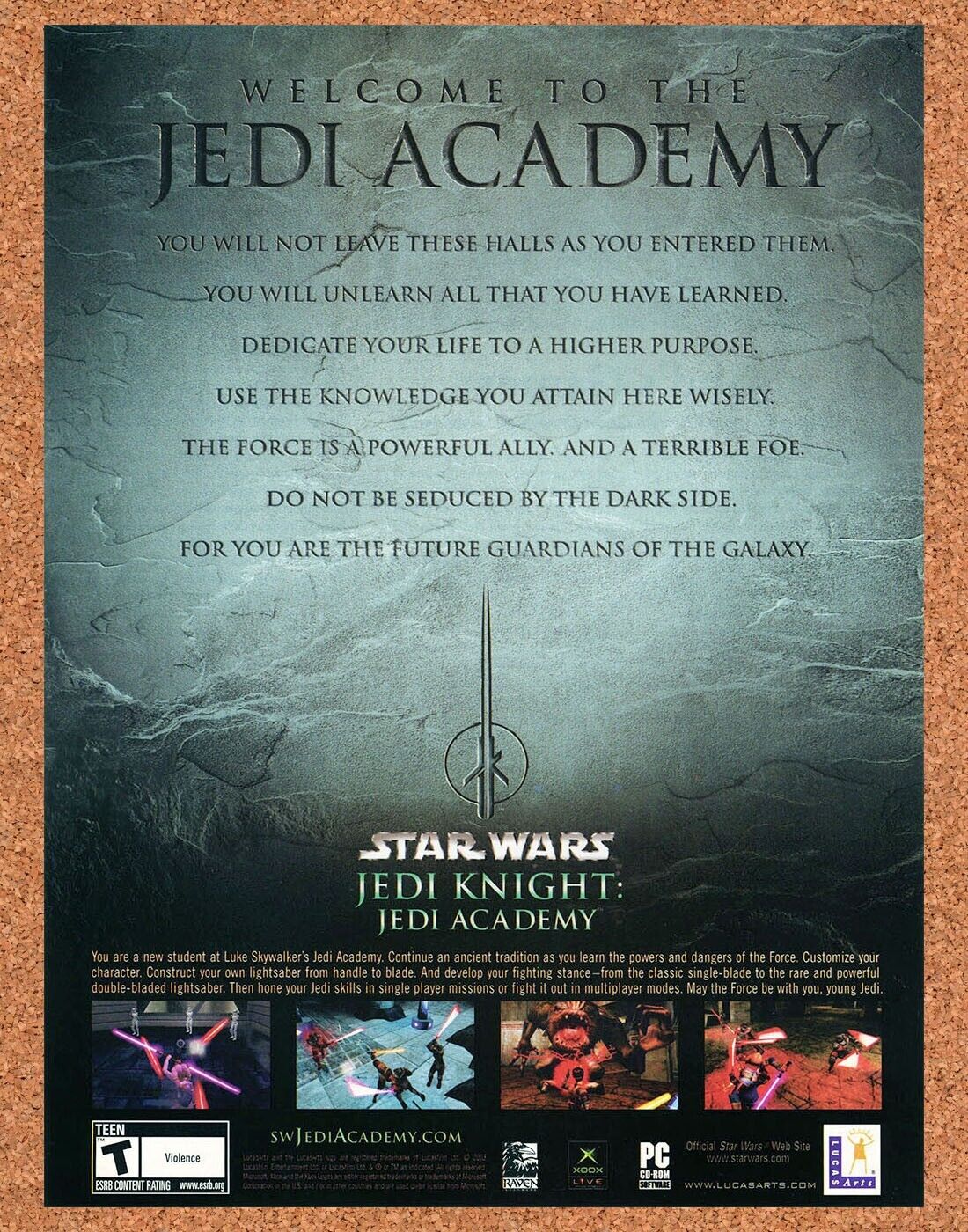 2005 Star Wars Jedi Knight Jedi Academy PC Original Ad