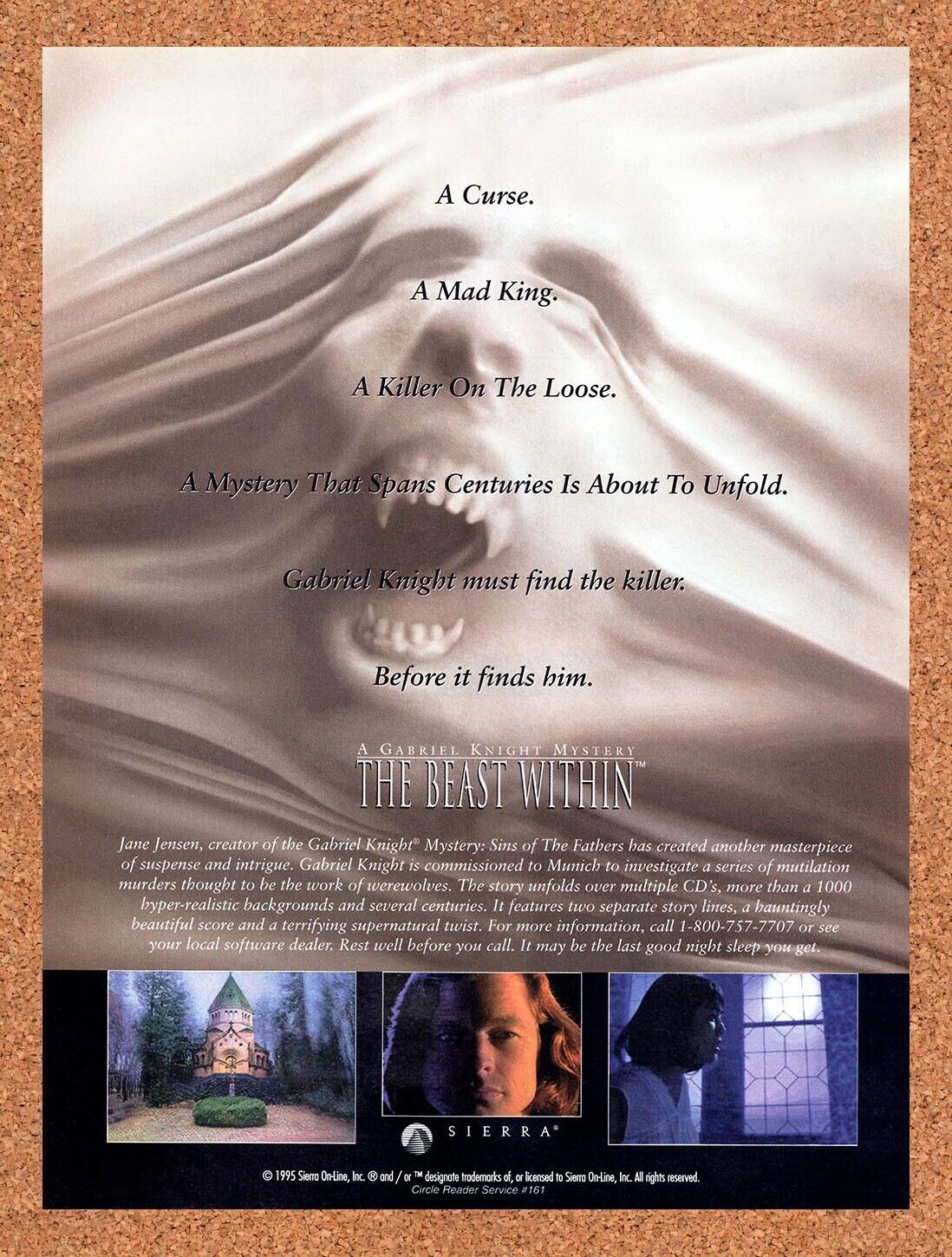1995 Gabriel Knight The Beast Within PC Original Ad v1
